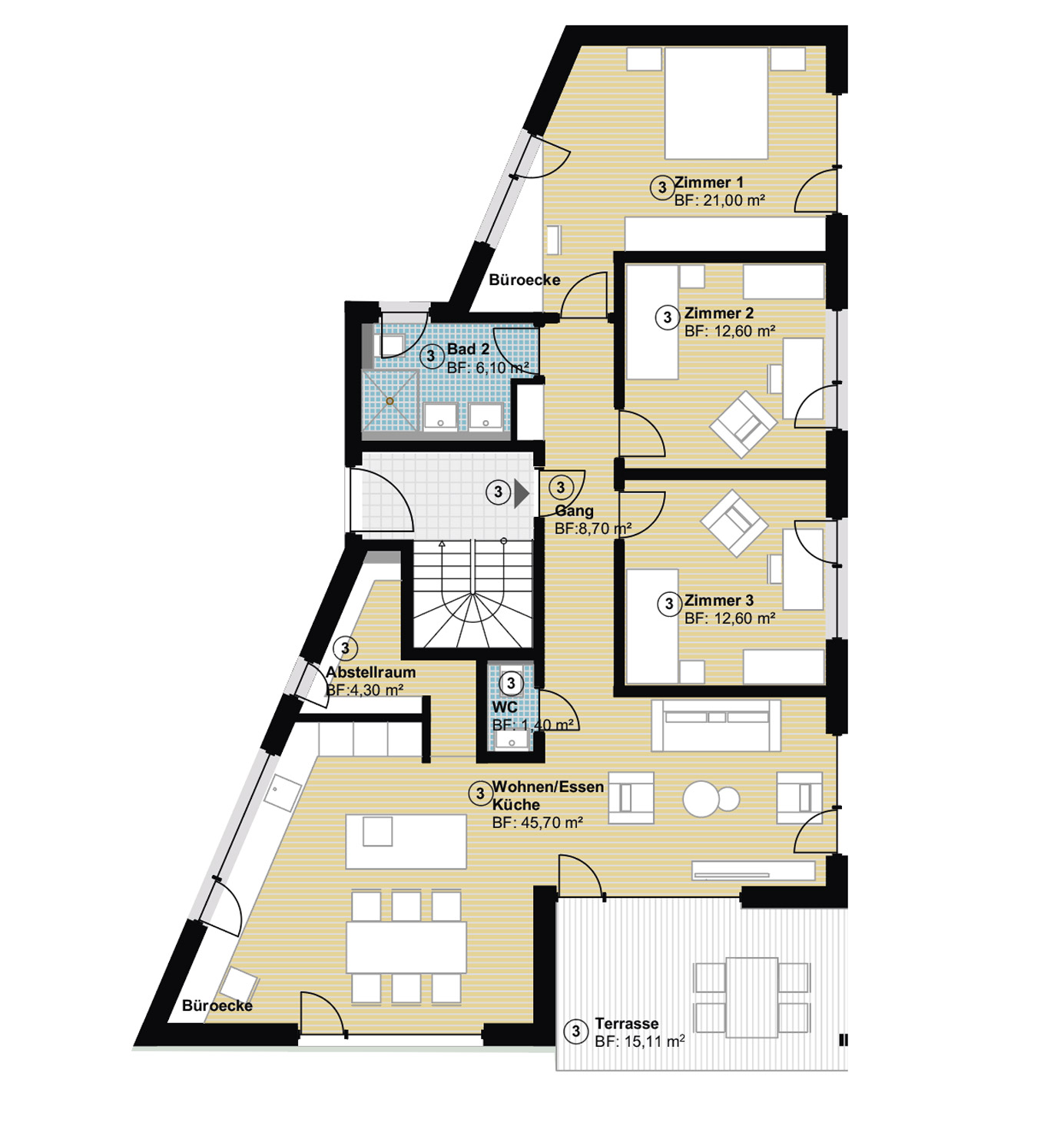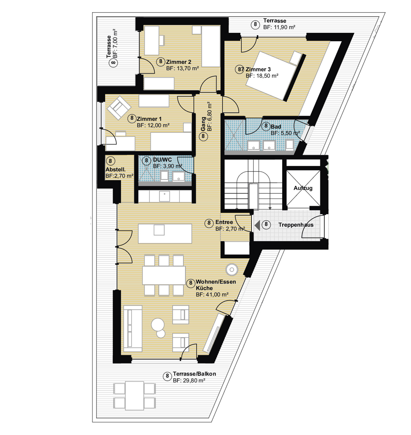4,5 Zimmern / 110 m² mit Dachterrasse