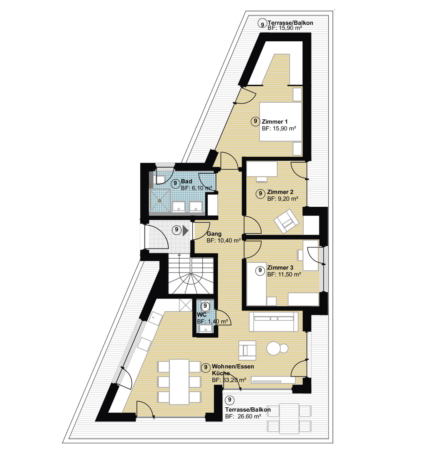 Wohneinheiten im Dachgeschoss/Penthouse: