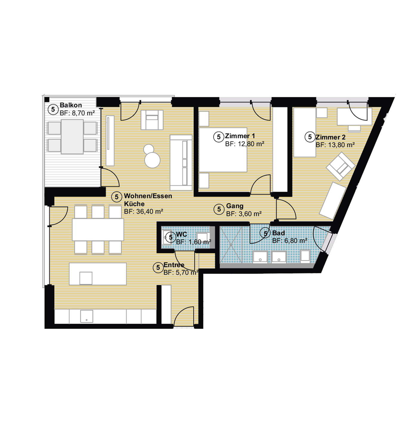 Separate Kellerräume, gemeinschaftliche Waschküche sowie praktische Extras wie ein zusätzliches Gäste-WC ab 3,5 Zimmern – für mehr Platz und kurze Wege im Alltag.